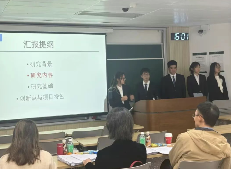现场评审工作准时启动,答辩教室内外秩序井然,气氛紧张热烈。各项目学生团队以现场展示和答辩相结合的形式,系统汇报了项目情况。评审专家组对每个项目汇报内容及结题/立项材料进行提问与综合点评,为学生们的后续研究和项目发展提供宝贵的反馈和建议。