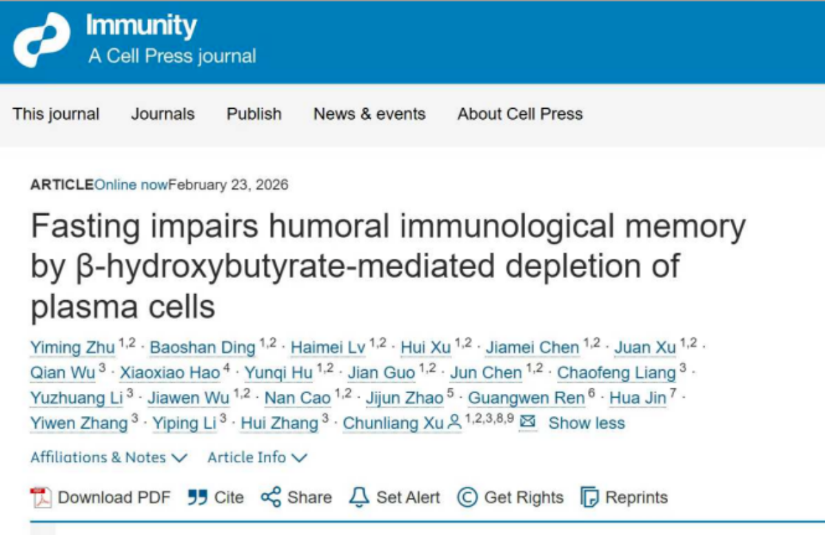 Immunity | 笔趣阁徐春亮教授团队揭示禁食损害体液免疫记忆,削弱疫苗保护效果