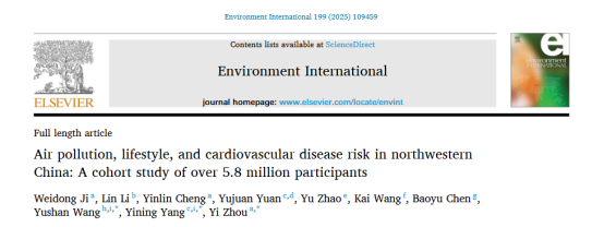 Despite continuous advancements in treatment and prevention, cardiovascular disease (CVD) remains a major global challenge. In 2023, approximately 18 million people worldwide died from CVD, accounting for 32% of total deaths. It is projected that by 2050, the number of CVD-related deaths will increase to 35.6 million, highlighting the urgent need for effective interventions to reduce its burden. The pathogenesis of CVD is complex, involving multiple factors such as genetics, environment, and lifestyle. As an important environmental risk factor, air pollution has been proven to be closely related to the incidence and mortality of CVD. However, existing studies have mainly focused on areas with relatively light traffic and industrial pollution, with fewer studies in regions significantly affected by natural sandstorms. In addition, lifestyle has a significant impact on CVD risk, and a healthy lifestyle may alleviate the adverse effects of air pollution to a certain extent. Although some studies have explored the relationship between air pollution, lifestyle, and CVD, research on the combined effect of multiple lifestyle factors and in the context of different regional pollution sources is still insufficient. Therefore, further research on the interaction between air pollution and lifestyle on CVD risk is very necessary. Recently, a joint team led by Professor Zhou Yi from Sun Yat-sen University and Professor Yang Yining from the People's Hospital of Xinjiang Uygur Autonomous Region published a research paper entitled Air pollution, lifestyle, and cardiovascular disease risk in northwestern China: A cohort study of over 5.8 million participants in the top-tier journal Environment International (Impact Factor: 10.3).