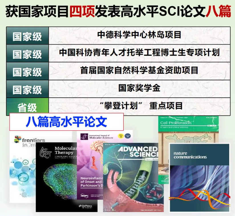 锚定“科技强国”建设目标,团队以科技创新为引领,聚焦干细胞临床转化应用的关键瓶颈问题,系统性地揭示间充质干细胞(MSC)的作用模式,研发MSC精准靶向治疗新策略;开展国际注册的MSC临床研究,为推进MSC临床转化奠定坚实基础。相关研究以第一或共一作者发表8篇国际高水平SCI论文,获第一届国家自然科学基金博士生项目、第一届中国科协青年人才托举工程博士生专项计划、国自然青年学生林岛项目等资助。