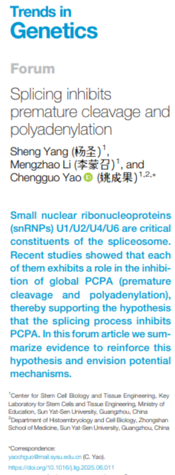 Trends in Genetics | 笔趣阁姚成果课题组提出splicing抑制过早mRNA3’末端加工与转录终止的普适性理论