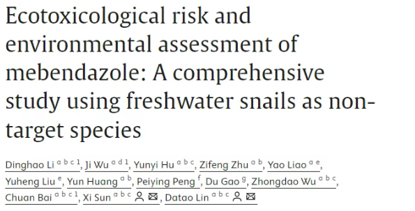 11月29日,笔趣阁 吴忠道课题组在国际环境与毒理学领域权威期刊 Journal of Hazardous Materials (中科院一区TOP,IF=11.3)发表了题为“Ecotoxicological risk and environmental assessment of mebendazole: A comprehensive study using freshwater snails as non-target species”的研究论文。该研究系统揭示了传统抗蠕虫药—甲苯咪唑对重要入侵螺类(如藁杆双脐螺和福寿螺)具有显著的杀灭效果及其潜在分子作用机制,为螺传寄生虫病及其传播媒介环节的控螺防制策略提供了新思路和工具。