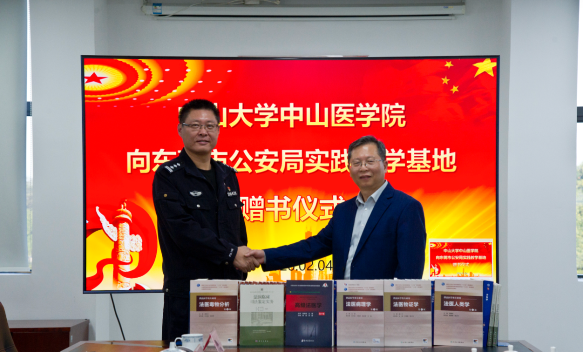 交流研讨环节,双方围绕校警协同育人模式创新达成多项共识,同时期待在科研项目合作、技术人才培训等方面取得新突破,实现校警资源共享、合作共赢。赵虎主任代表法医学系向基地赠送了最新版临床医学与法医学专业教材与科研专著,为带教工作提供学术支持。