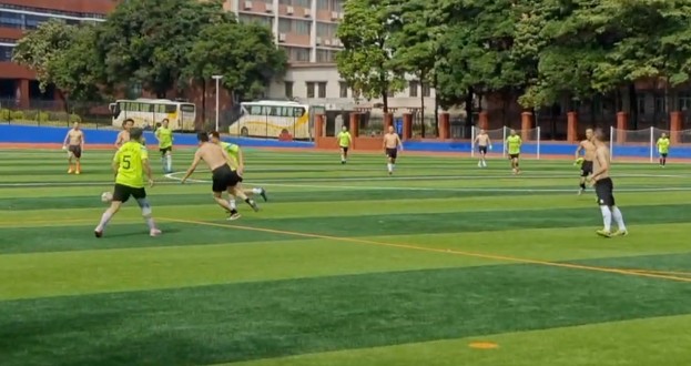 除了羽毛球,教职工们积极参与的球类运动还有足球,北校田径场翻修竣工后,为教职工们业余体育运动提供了更便利的场所,教职工与学生们激烈的追逐,也为绿茵场增添了一丝活力。