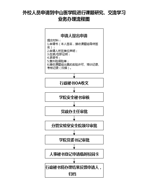 导航痕迹 首页 学院信息 办事指引 外校人员长期入校申请办理指引 316 Share 外校人员长期入校申请办理指引 发布人:梁倚华 发布日期:2025-07-23 附件 声明模板.docx 承诺书-科研人员版.docx 承诺书-学生版(含家长知情同意书).docx
