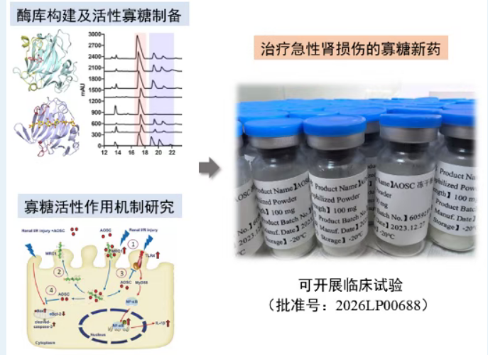 近日,笔趣阁 王蔚东、李春凌教授课题组在海洋活性寡糖转化应用领域取得重要进展。团队联合国内高校与产业界历经十余年攻关,共同研发的“治疗急性肾损伤的海洋寡糖”创新药正式获国家药品监督管理局临床试验批准(批准号:2026LP00688),标志着该成果从基础研究迈向临床转化关键阶段,成为课题组近年产学研用协同创新的标志性成果。