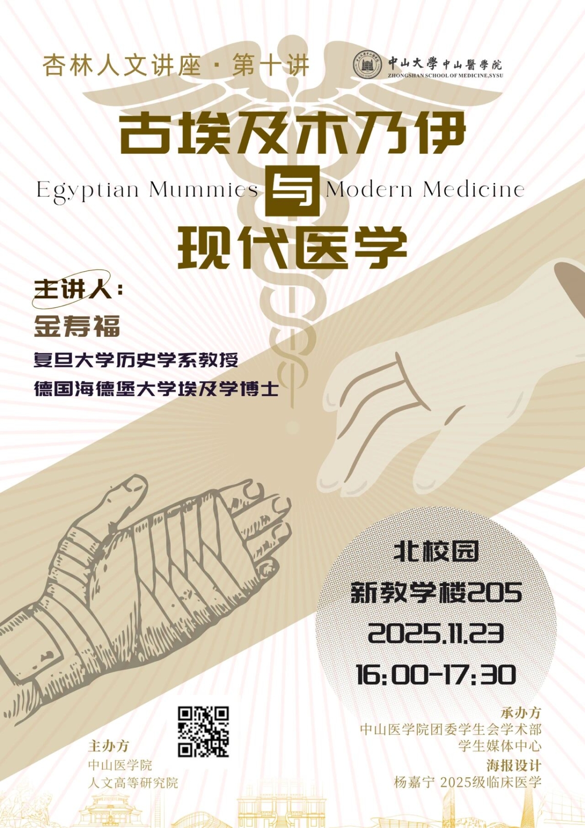 导航痕迹 首页 科学研究 学术讲座 杏林人文讲座第十期 科学研究 科研通知 学术讲座 科研平台 办理指引 杏林人文讲座第十期 古埃及木乃伊与现代医学 发布人:张玉琦 发布日期:2025-11-20