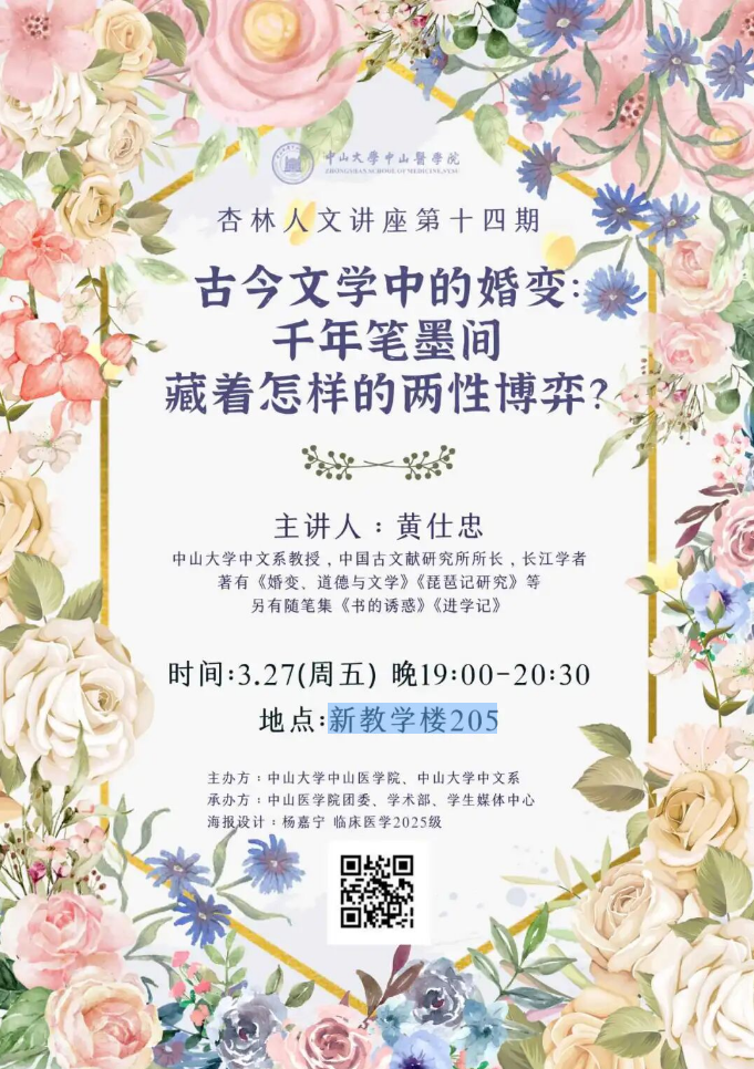 导航痕迹 首页 科学研究 学术讲座 杏林人文讲座第十四期 科学研究 科研通知 学术讲座 科研平台 办理指引 杏林人文讲座第十四期 古今文学中的婚变千年笔墨间藏着怎样的两性博弈? 发布人:张玉琦 发布日期:2026-03-25