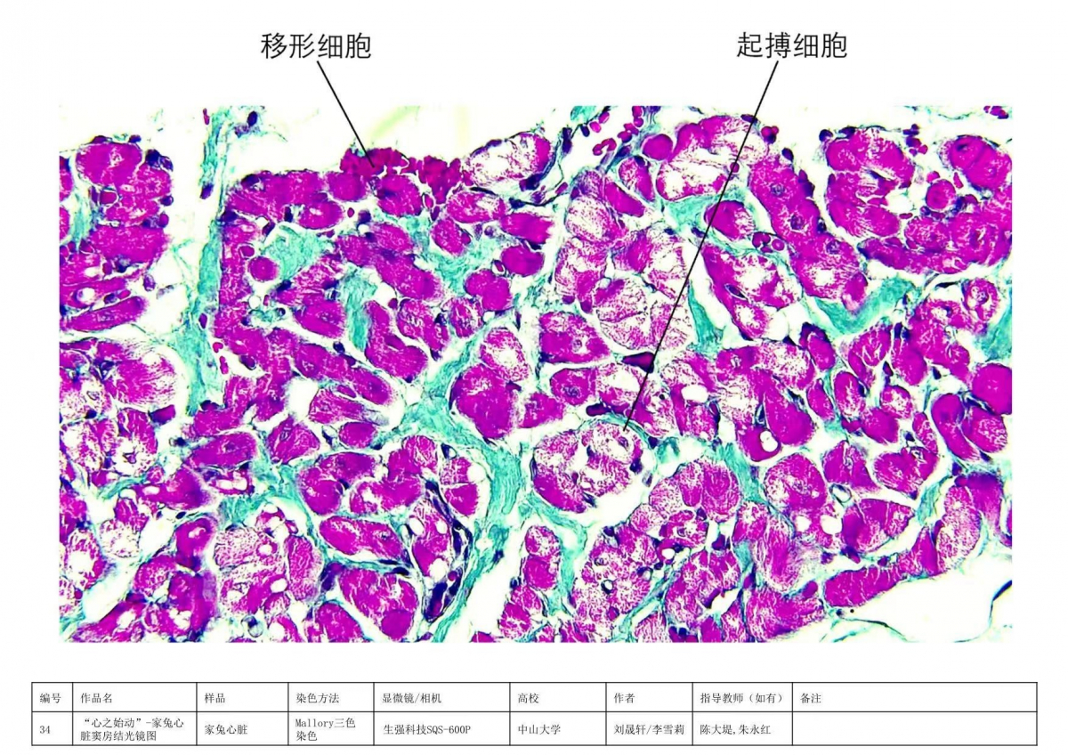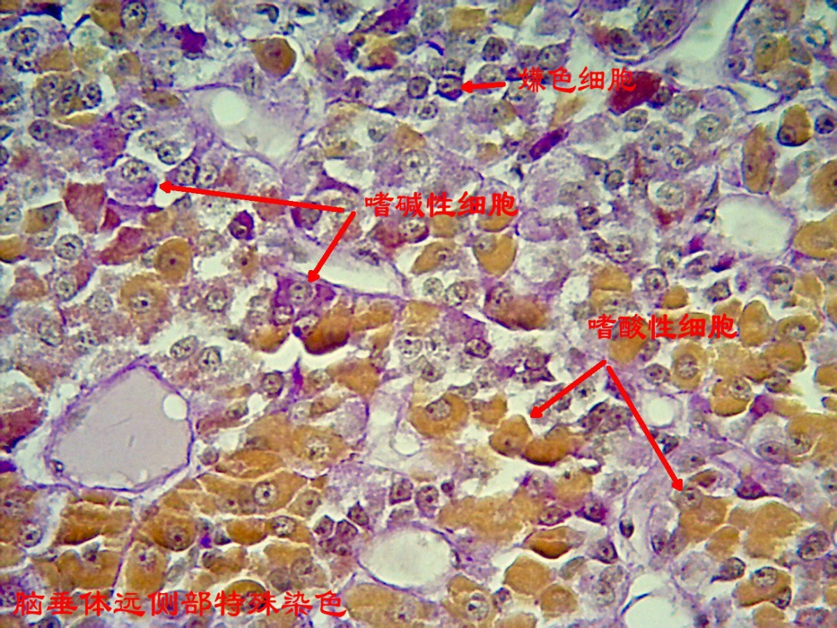 导航痕迹 首页 馆藏标本 组织学与胚胎学标本 馆藏标本 人体解剖学标本 组织学与胚胎学标本 病理学标本 人体手绘 微生物学标本 组织学与胚胎学标本 包括人体组织学和胚胎学的标本,根据人体的不同器官组织进行分类展示人体的内部结构,胚胎不同时期的发生发育的过程。 组织来源:猫;组织名称:脑垂体;染色方式:HE染色。本图片为低倍镜下猫脑垂体HE染色整体光镜图,脑垂体整体结构完整,无皱褶与裂痕,各层组织成分染色鲜艳、清晰。 组织来源:猫;组织名称:脑垂体;染色方式:高碘酸-无色品红-橙黄G染色。本图片为高倍镜下猫脑垂体高碘酸-无色品红-橙黄G染色光镜图,其中,嗜酸性细胞胞质内颗粒呈橙黄色,嗜碱性细胞胞质内颗粒呈红紫色,嫌色细胞胞质呈浅灰蓝色或无色,胞核呈蓝褐色,红细胞呈鲜橙黄色。 组织来源:兔;组织名称:心脏窦房结;染色方式:mallory三色染色法。本图为家兔心脏窦房结mallory三色染色光镜图,显示胶原纤维、神经纤维呈亮绿色,心肌纤维呈红色,细胞核呈蓝黑色,且能清晰显示窦房结起搏细胞和移行细胞。 组织来源:狗;组织名称:气官;染色方式:HE染色。本图片为低倍镜下狗气管HE染色整体光镜图,气管整体结构完整,无皱褶与裂痕,各层组织成分染色鲜艳、清晰。 组织来源:狗;组织名称:气官;染色方式:HE染色。本图片为高倍镜下狗气管HE染色黏膜与黏膜下层部分光镜图,黏膜层细胞结构典型、可见纤毛细胞、杯状细胞及其它各种细胞,粘模下层胶原纤维等染成红色,周边有成纤维细胞等。 组织来源:小鼠;组织名称:胰腺;染色方式:改良醛品红- 丽春红法染色法。本图片为高倍镜下小鼠胰腺组织胰岛细胞改良醛品红- 丽春红法染色光镜图,其中,A细胞呈朱红色;B细胞呈紫蓝色;D细胞、胶原纤维呈淡绿色。无共染且颜色鲜明,层次清楚,结构清晰,易于观察。