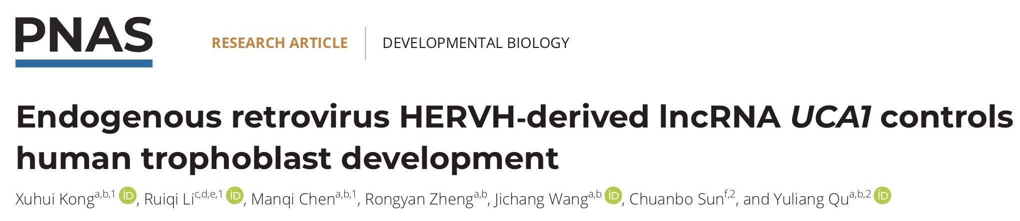 2024年3月14日,我重点实验室王继厂教授团队在PNAS杂志发表题为Endogenous retrovirus HERVH-derived lncRNA UCA1 controls human trophoblast development的研究论文,对上述问题进行了初步回答,揭示了灵长类特有的内源性逆转录病毒-H(HERVH)调控人类胎盘发育的新模式。